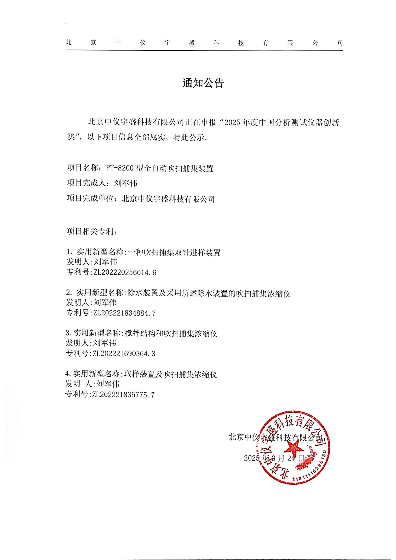 • 關(guān)于北京中儀宇盛申報(bào)“2025年度中國分析測試儀器創(chuàng)新獎”的 2025-03-24